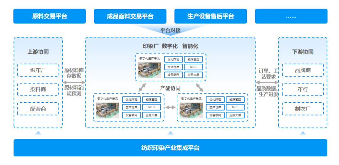 针对行业痛点,三技精密携手美云智数按照“1+N+X”的框架进行集群建设,聚焦1个行业平台、N家先行标杆企业,建设纺织印染协同平台,强化联接产业链上下游,提升佛山纺织印染产业竞争力。“1+N+X”是指,以1个纺织印染行业工业互联网平台为底座,以产业链中N个印染企业为数字化转型实施主体推进产业升级,为印染产业引入X个品牌商、配件商、布行、经销商等配套资源。
