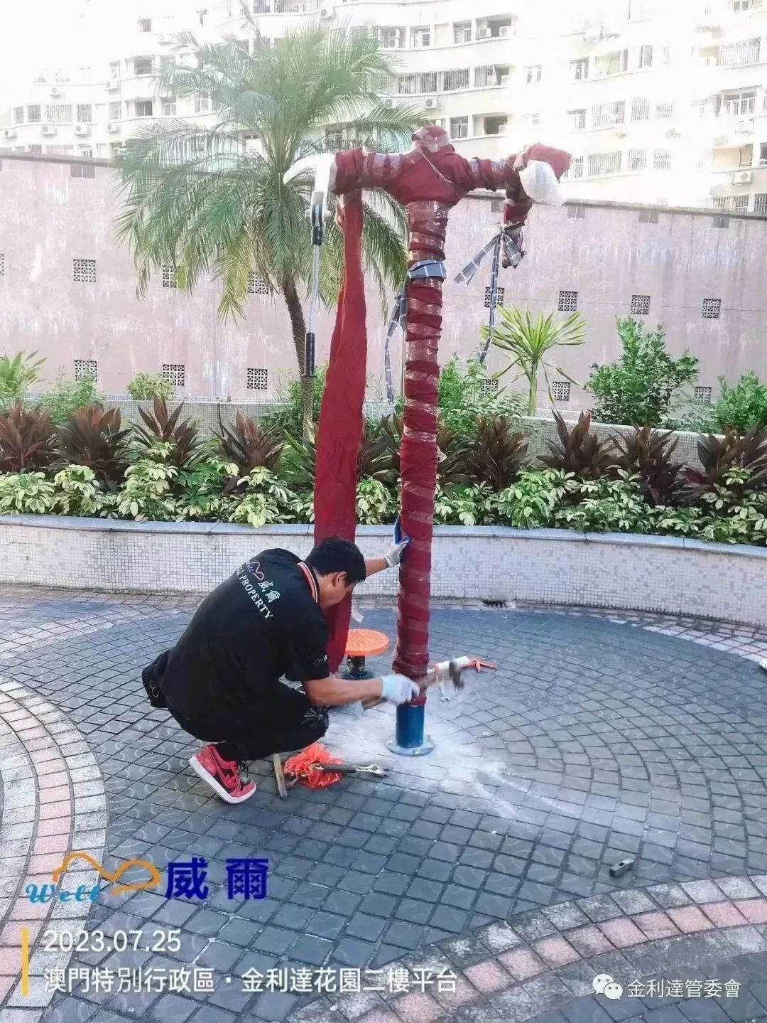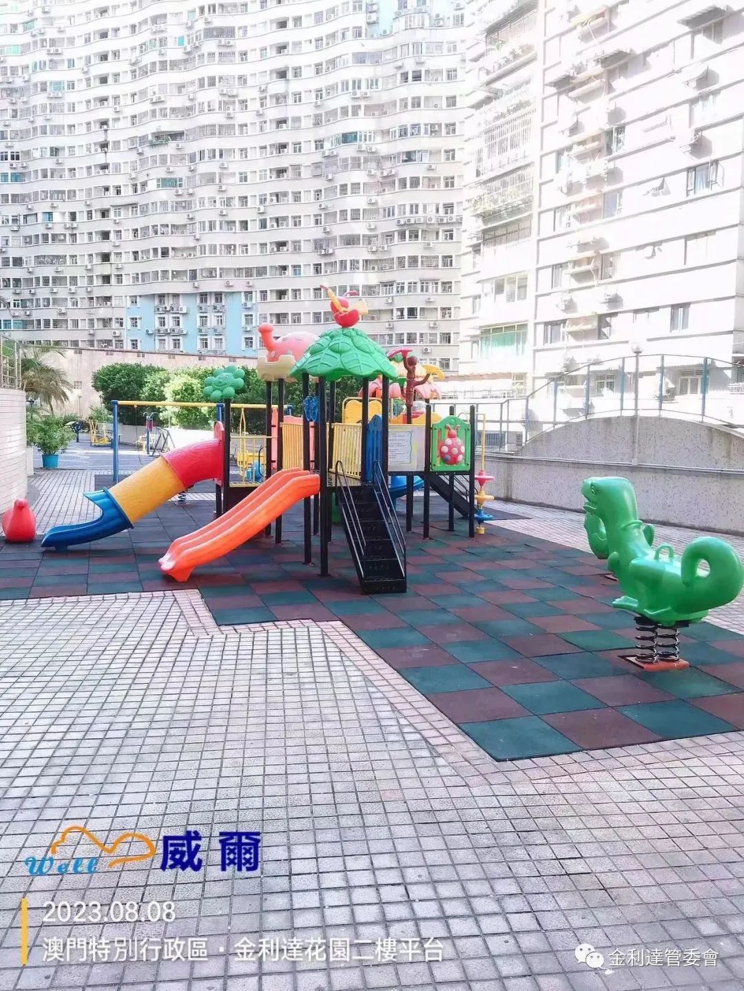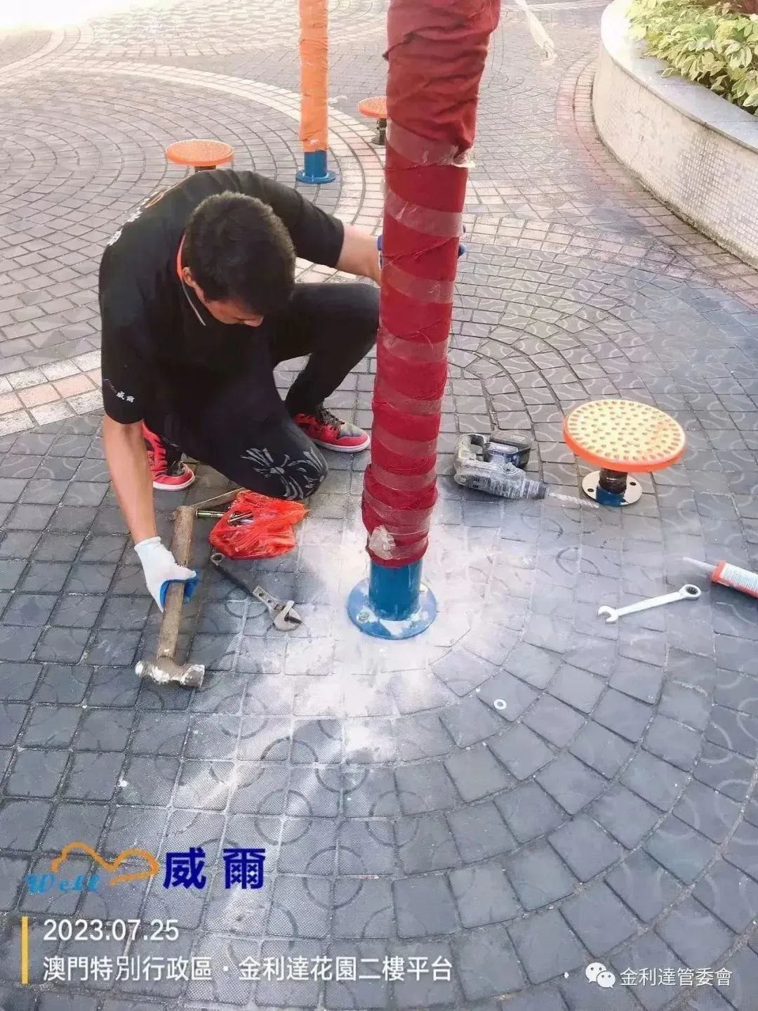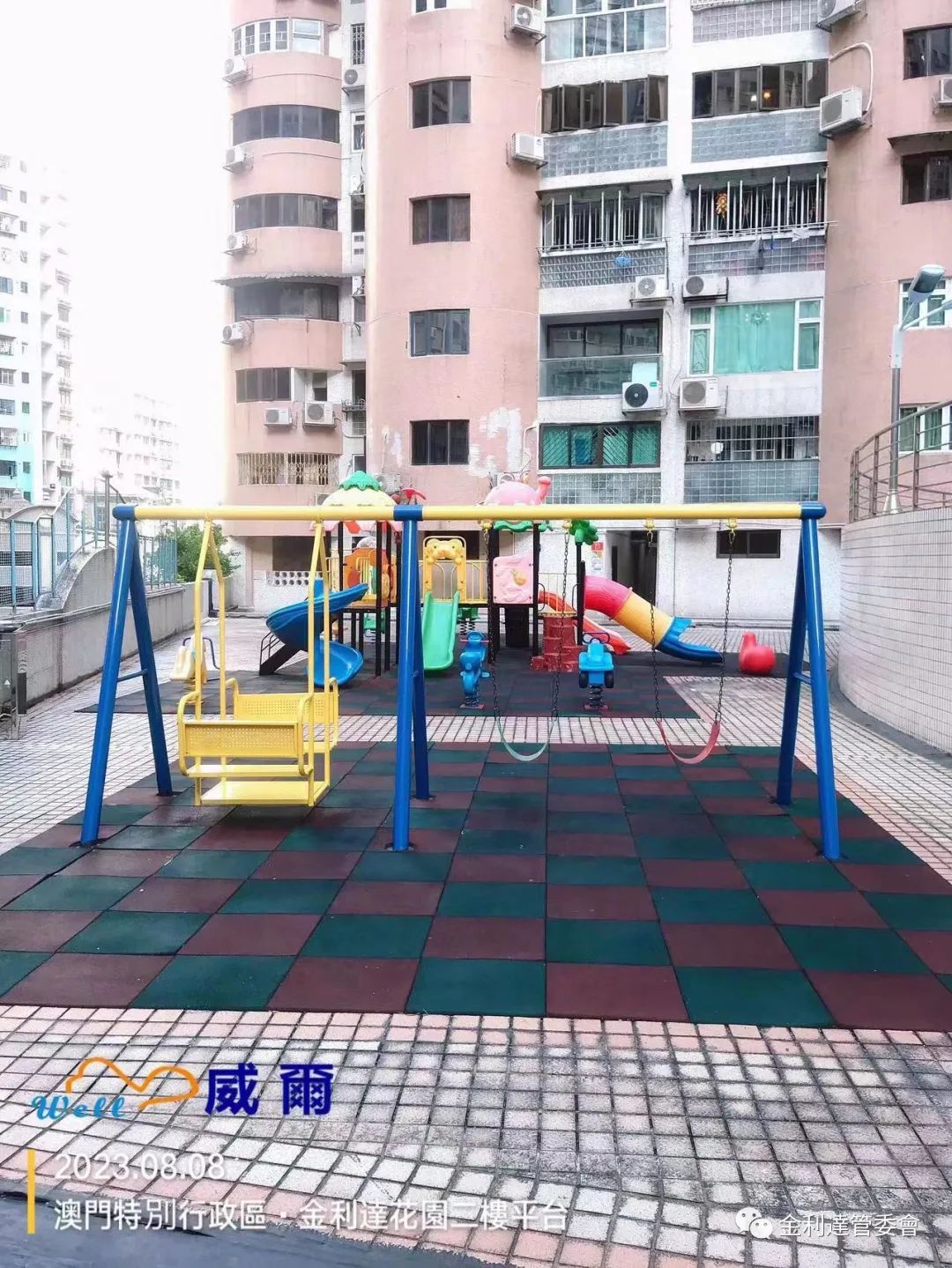 為給各業主提供一個更加多元化的休閒環境,威爾管理公司再免費為本大廈加裝了2個健身器材。同時,威爾物管派員對平台現有老化的健身設施及兒童遊樂設施進行油漆翻新工程。