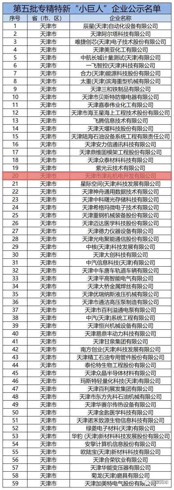 其中,创业知本社联合发起单位--津兆机电被认定为第五批专精特新“小巨人”企业。