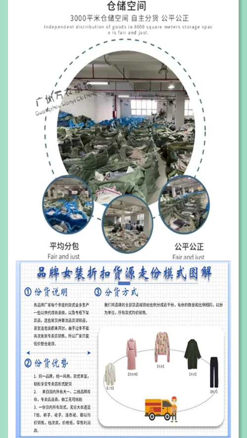 专业从事品牌折扣女装!库存服装尾货!品牌服装尾货批发!本公司始终坚持中高端路线,以深圳货、广州货、上海货、台湾货为主,辅一部分的精品杭州货,定位国内外知名的一二线品牌女装,兼容汇聚了众多相同层次的服装品牌,涵盖春、夏、秋、冬应时应季女装,欧美、日韩、时尚、淑女、休闲、个性等不同风格的的产品应有尽有,云裳霓影,魅力尽显。本公司只做分份批发,不做一件代发,零售,挑款混批等业务!分份批发,一般为100-300件/份如果没有做过品牌折扣分份的。