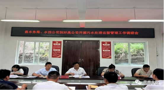 7月31日,水投公司党委副书记、总经理朱应强到环禹公司调研污水运营管理工作,县环禹公司班子成员及各部门负责人参加。