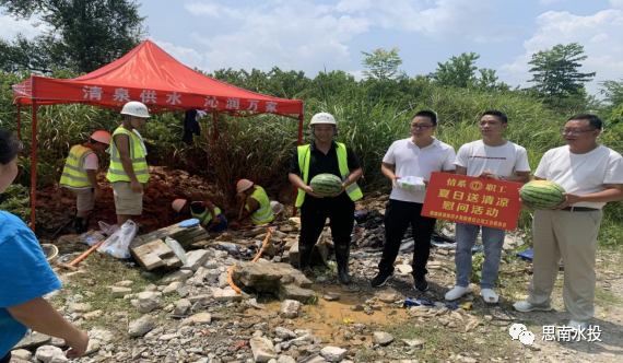7月31日,水投公司党委副书记罗杜鹃到邵家桥、瓮溪等供水服务站开展“夏送清凉”慰问活动,县清泉公司班子成员参加。