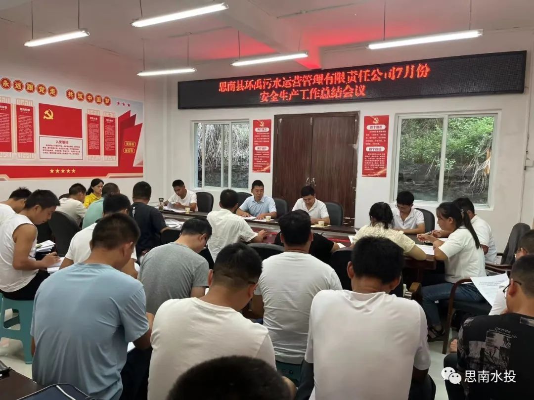 7月31日,县环禹公司组织召开7月份安全生产工作总结会议及8月份安全生产暨环保工作部署会,会上对生态环保督察、当前火灾防控、汛期地质灾害隐患排查、网络诈骗多种形式、夏季高温作业等方面工作进行部署,县环禹公司全体人员及各污水处理厂负责人参加。