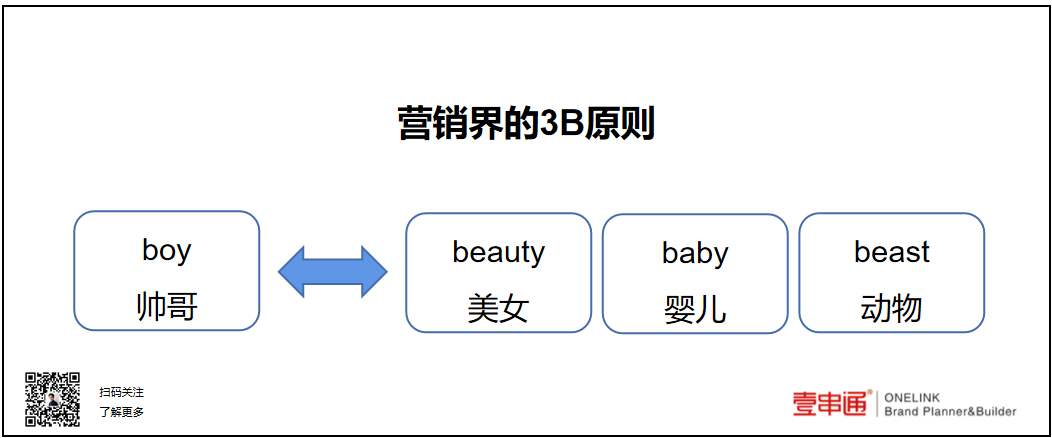 美国三大广告宗师之一的大卫·奥格威曾提出营销界的3B原则:beauty—美女、beast—动物、baby—婴儿。