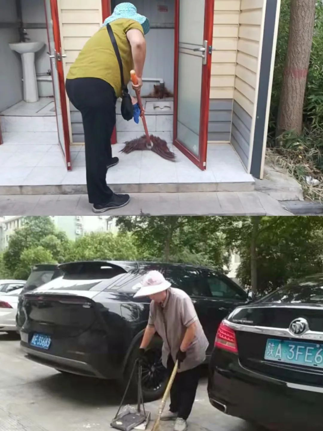 共裕社区物业工作人员打扫社区公共区域的卫生,营造良好的社区环境。