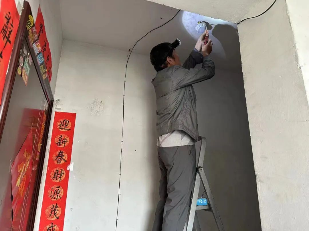 城市嘉园小区物业工作人员对小区公共区域照明设施进行维修更换。