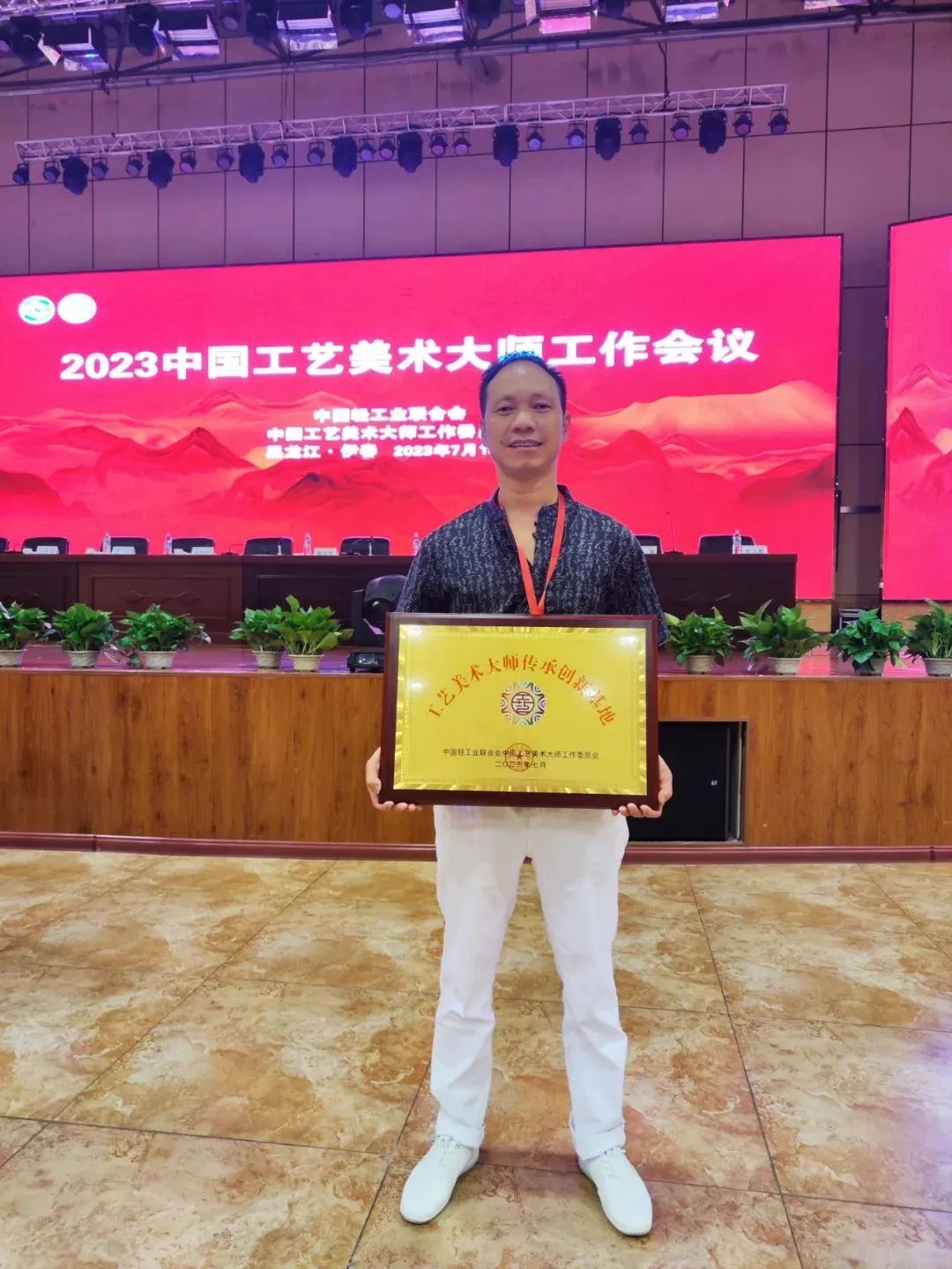 7月18日,2023中国工艺美术大师工作会议在黑龙江省伊春市召开。大会对在全国范围内评选出的61家工艺美术大师传承创新基地授牌,其中,艺缘公司陈兴大师工作室有幸入选,是云南省工艺美术行业本年度唯一获此殊荣的基地。