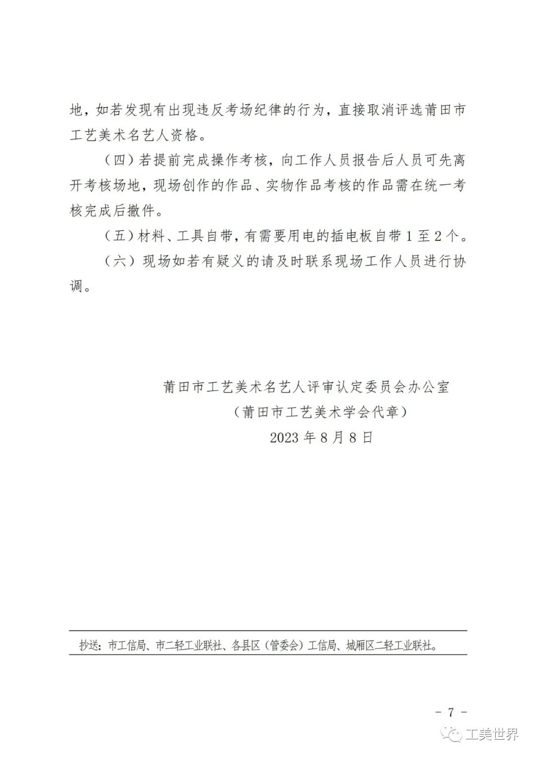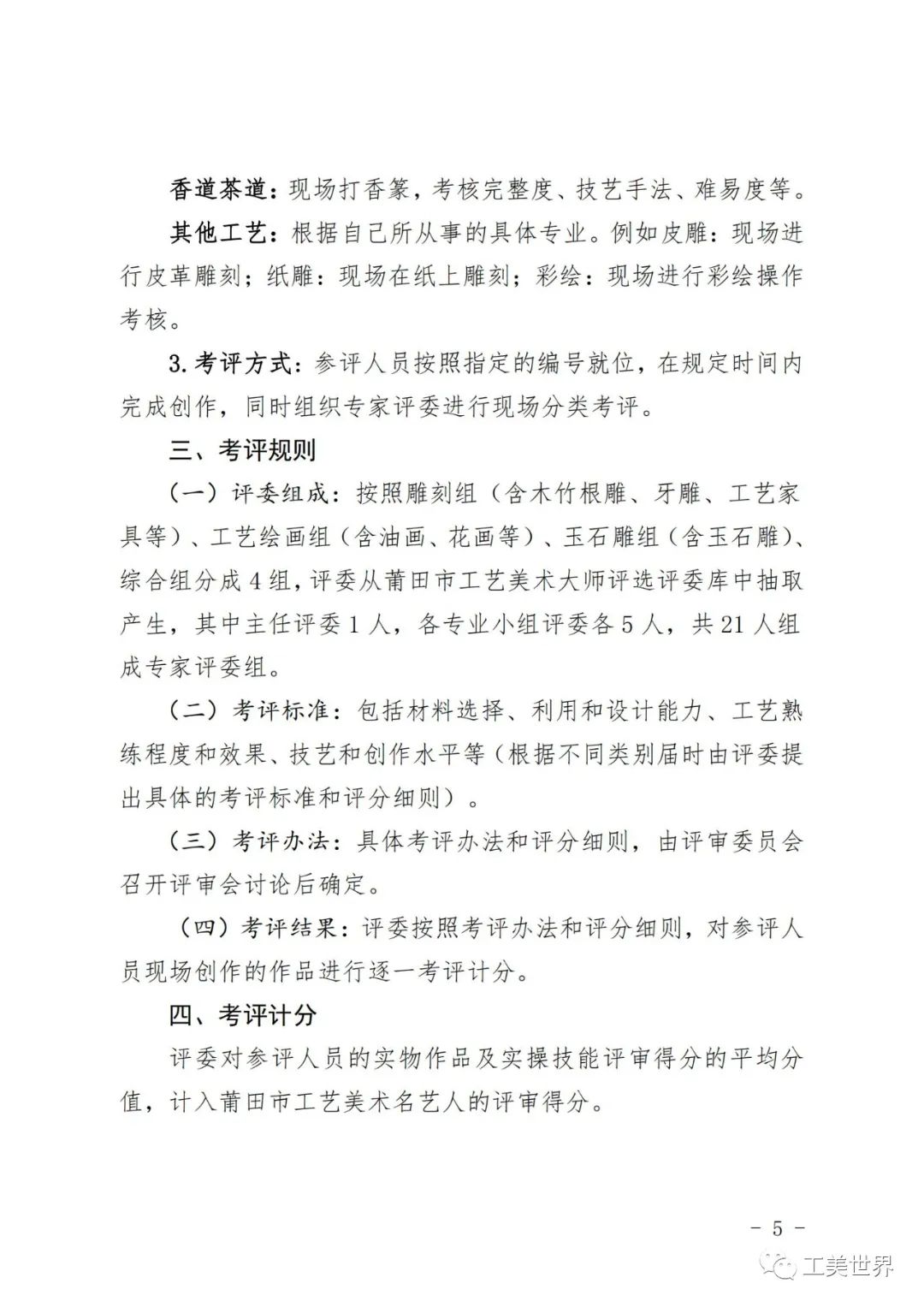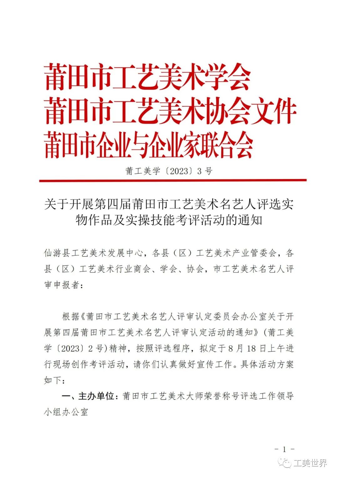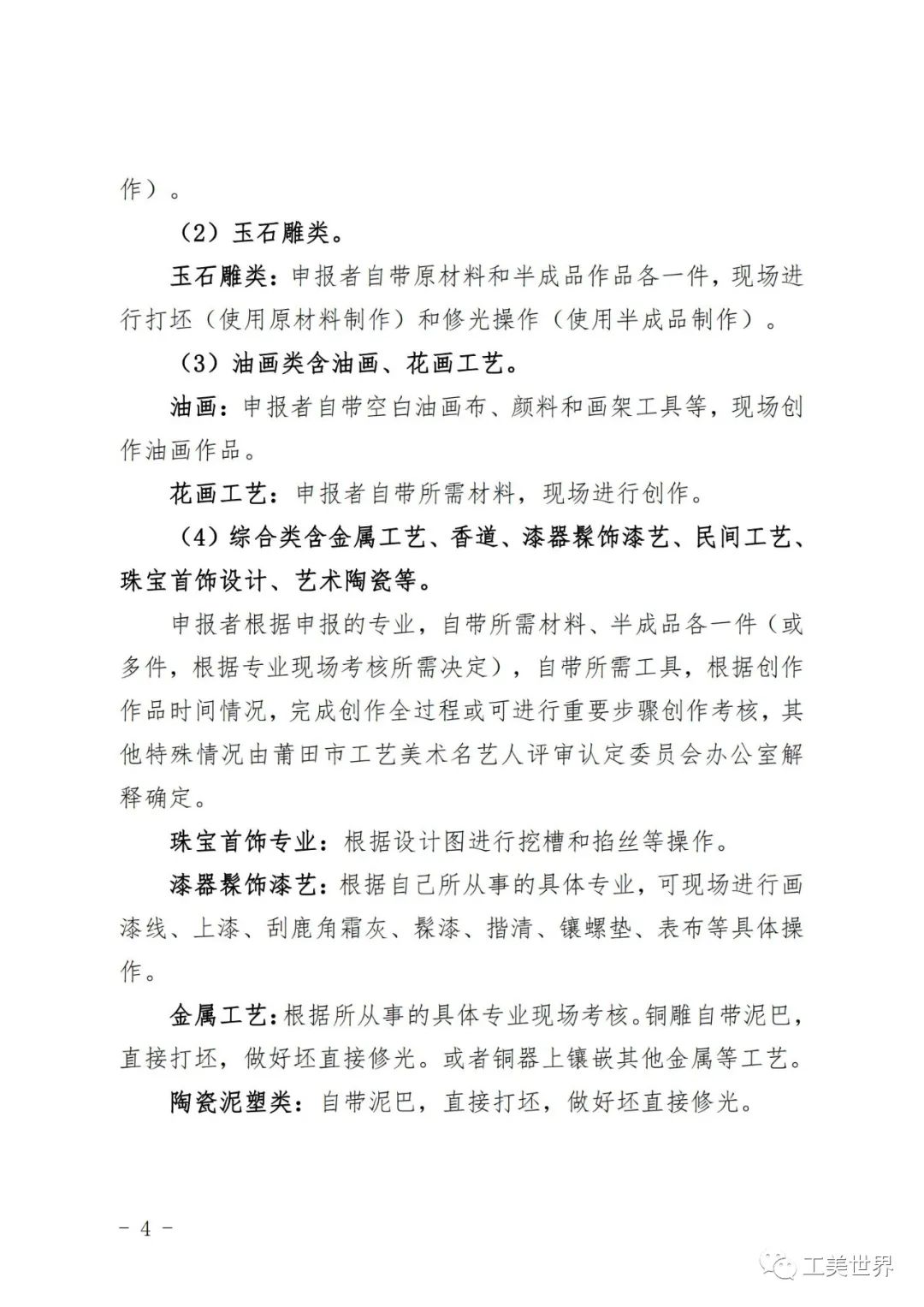 关于开展第四届莆田市工艺美术名艺人评选实物作品及实操技能考评活动的通知
