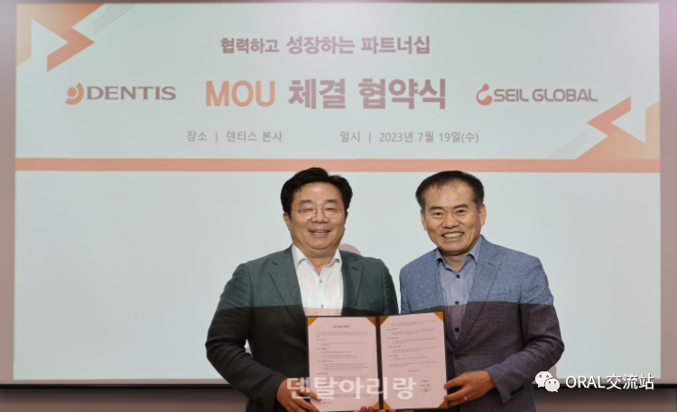 ㈜덴티스(대표 심기봉)가 지난 7월 19일 치과기자재 전문 기업 세일글로발(대표 안임준)과 전략적 업무 협약을 체결했다.