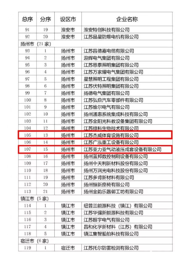 近日,江苏省首批企业知识产权管理贯标绩效评价合格单位名单新鲜出炉,江苏杰威体育设施有限公司、江苏亚力亚气动液压成套设备有限公司榜上有名,标志着杰威体育、亚力亚气动的知识产权标准化管理体系贯穿了研发、采购、生产、销售等各个环节,在企业知识产权的规范化管理、体系化保护、市场化运用方面迈上了新的台阶。