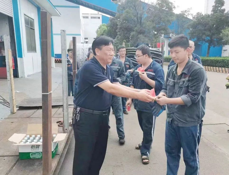 为确保装车工作顺利进行,切实关心关爱职工,机电设备科党支部组织人员携带西瓜、矿泉水等防暑降温物品到工作现场开展了送清凉活动。一块西瓜、一瓶饮料、一句句温馨的关怀话语,鼓舞了现场职工的工作热情。