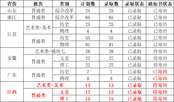 我校各省各批次录取结果如下