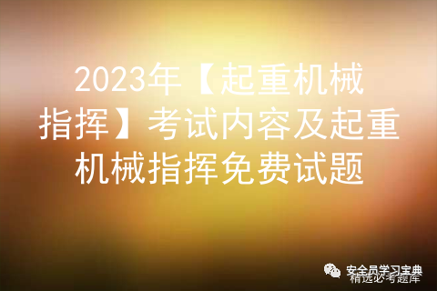 起重机械指挥考试内容是安全生产模拟考试一点通生成的,起重机械指挥证模拟考试题库是根据起重机械指挥最新版教材汇编出起重机械指挥仿真模拟考试。2023年【起重机械指挥】考试内容及起重机械指挥免费试题