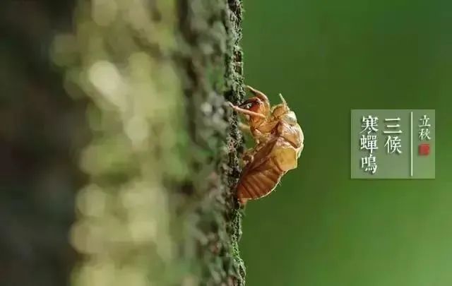 立秋后低鸣的蝉称寒蝉。寒蝉吃饱喝足,再加上温度适宜,它们卖力地鸣叫着,好像在告诉人们:“炎热的夏天已经过去,我们的生命也将走到尽头了。”