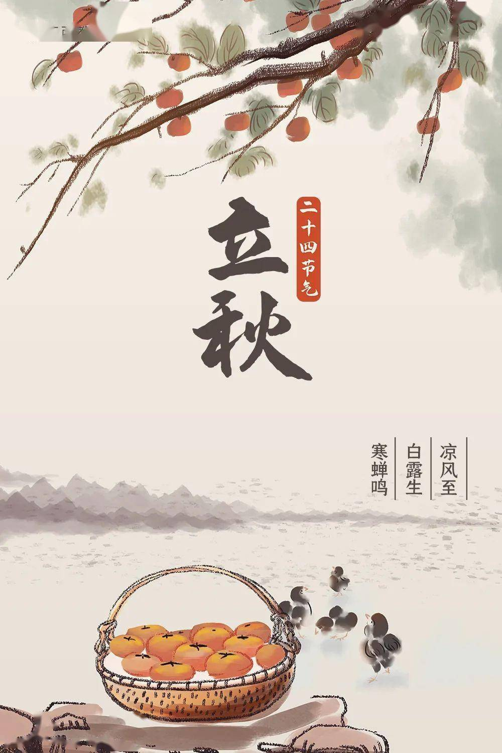 立秋,是“四立”之一,表示秋季的开始,禾谷开始成熟,收获的季节到了。《历书》曰:“斗指西南维为立秋,阴意出地始杀万物,按秋训示,谷熟也。”《说文解字》:“秋,禾谷熟也。”立秋标志着孟秋时节正式开始,它是仅次于大暑、小暑的第三热节气,但立秋并不代表酷热天气就此结束,初秋期间天气仍然很热,俗称“秋老虎”。