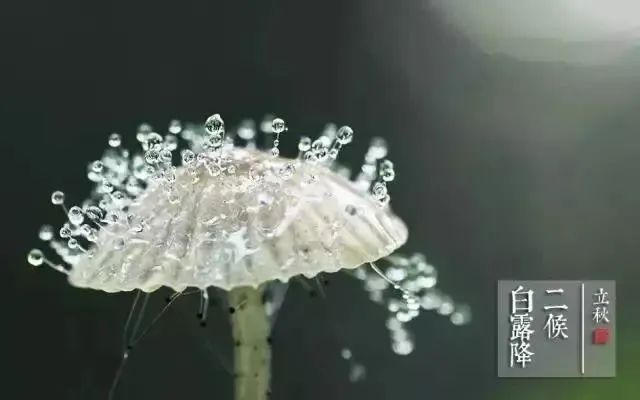 立秋时节,因为白天日照很强,而夜晚又比较凉爽,早晚温差较大,夜间的水蒸气接近地面,所以在清晨形成白雾,又在室外植物上凝结成了一颗颗晶莹剔透的露珠。