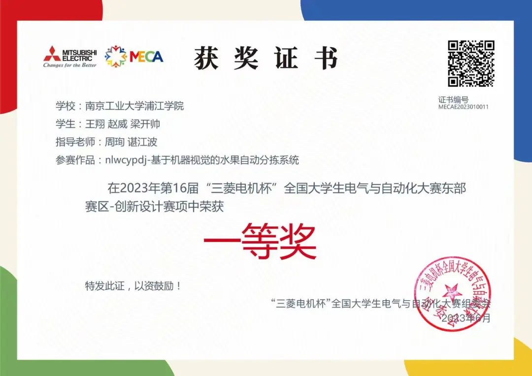 经过不懈的努力,浦江机电参赛成员王翔、梁开帅、赵威最终取得了优异的比赛成绩。所在队伍荣获创新设计赛项二等奖。