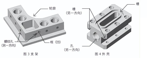 这是将上图零件不仅从一个方向而从多个方向实施加工而成的加工品。如图 3 所示,除了从一个方向进行轮廓形状加工、孔加工、槽加工和切口加工外,还从横向进行孔加工。公众号《机械工程文萃》,工程师的加油站!