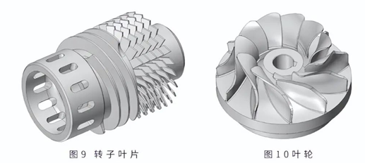 在最新的 5 轴加工机和复合加工机中,有些形状只能通过一边与刀具运动同步地旋转材料一边进行加工才能完成。典型的形状是图9所示的被称为转子叶片的形状( 4 轴同步)和图10所示的叶轮那样的形状(5 轴同步)。