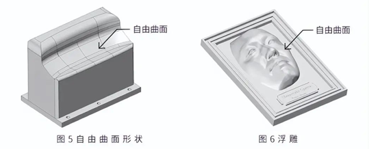 3 轴加工是一种即使从一个方向加工也能切削光滑的曲面(自由曲面等)的方法。沿着顶端圆形的球头立铣刀的曲面移动,对其进行精加工。不仅可以加工图 5 所示的具有自由曲面的零件,还可以加工图 6 所示的扫描人和动物而成的曲面。
