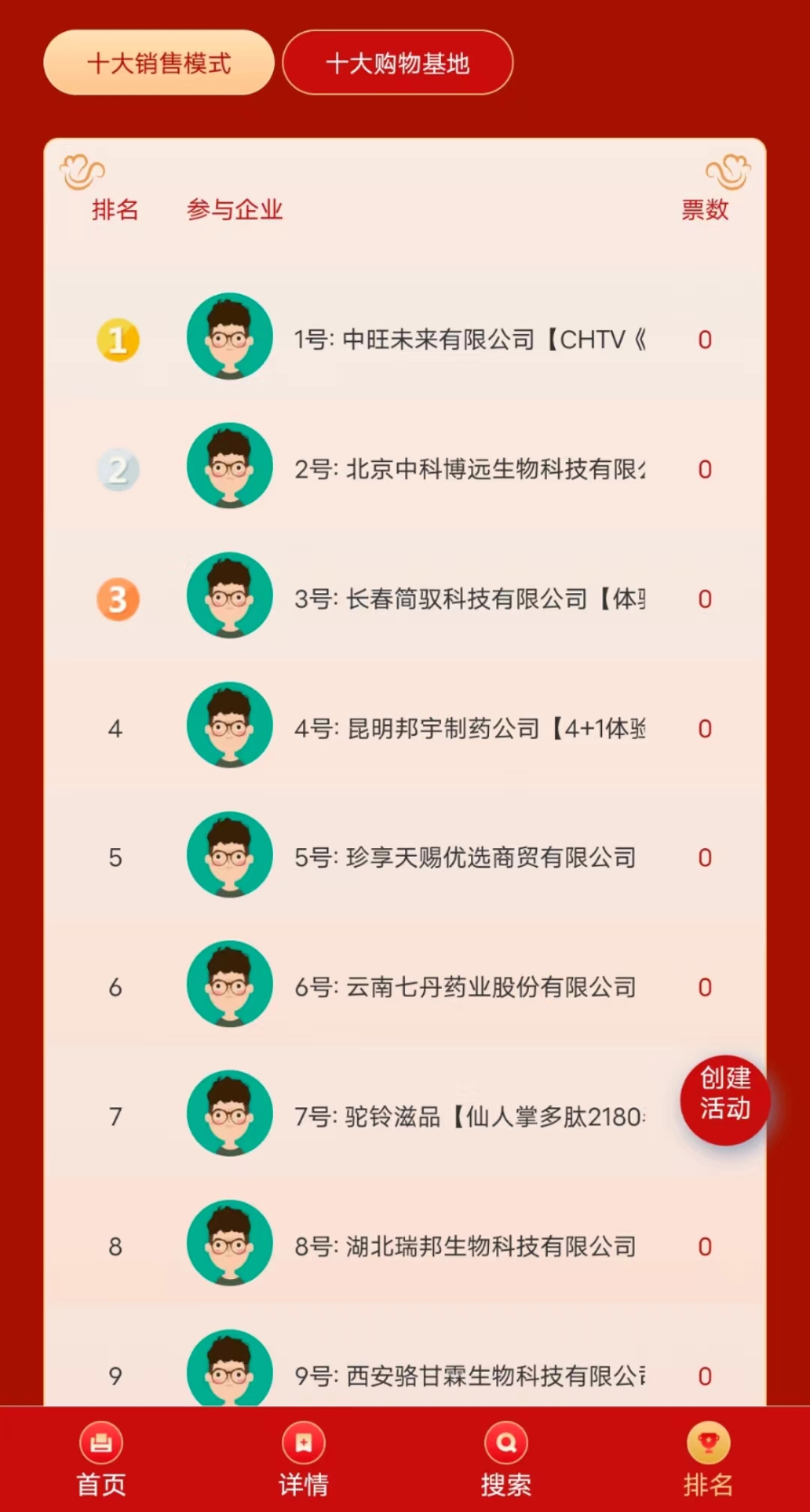 右图:点击右下角【排名】按钮,可查看实时排行榜;模式、基地分别排名;默认按照报名顺序排列,排名根据投票数据实时更新。