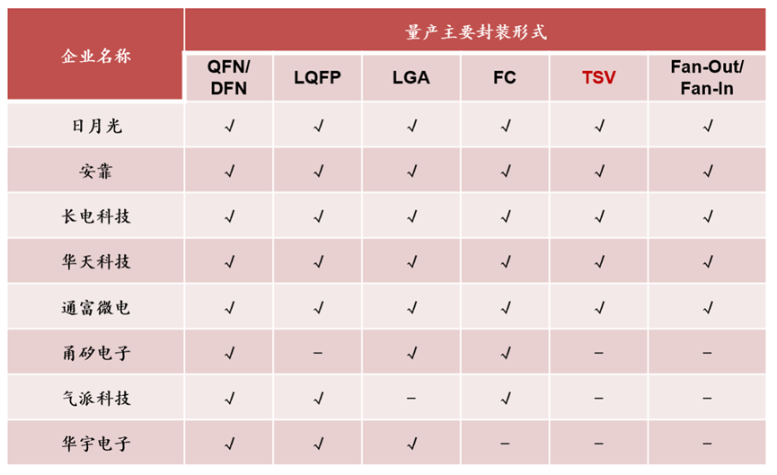 头部封测企业量产主要封装形式