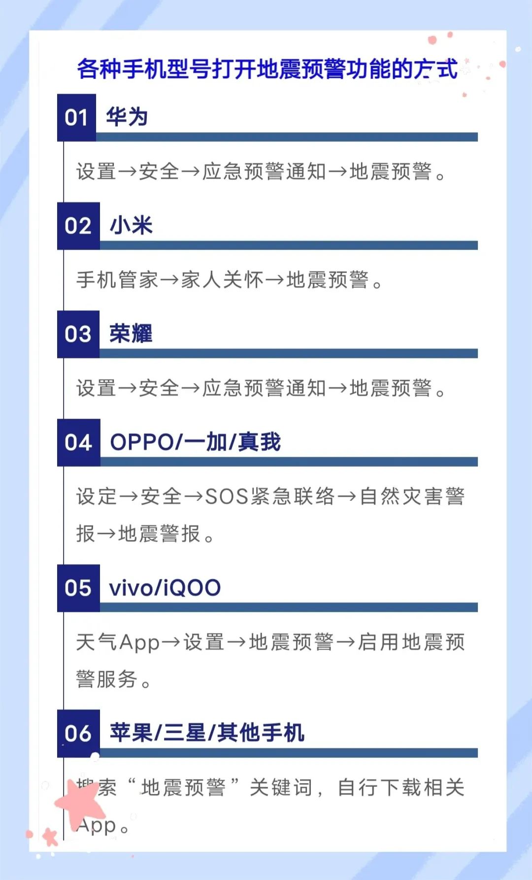 手机地震预警功能非常重要!在紧急时刻提前几秒钟的预警,都是紧急避险的宝贵时间。您的手机也可以开通预警功能。