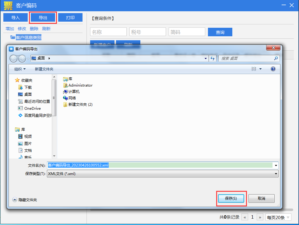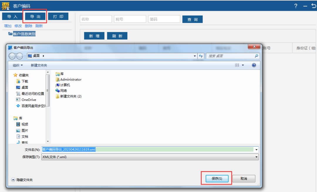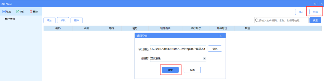 点击【导出】,选择非系统盘进行保存即可,保存后客户编码的数据就已经备份好了。