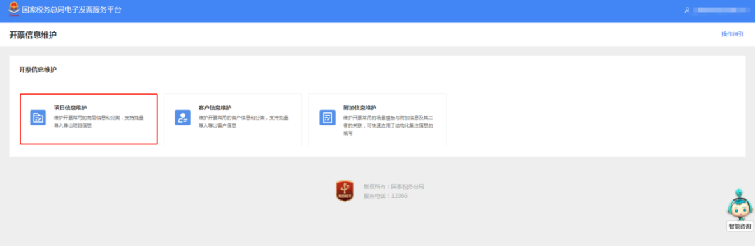 相关路径:【我要办税】-【开票业务】-【开票信息维护】-【项目信息维护】。