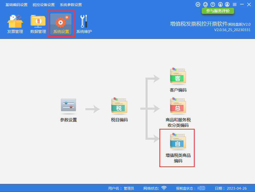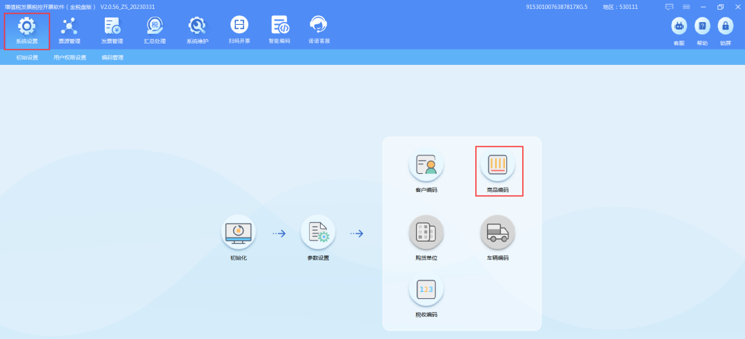 登录开票软件后,点击【系统设置】—【商品编码】。