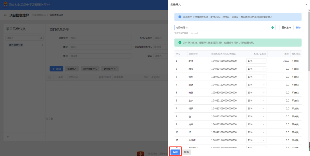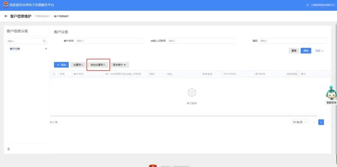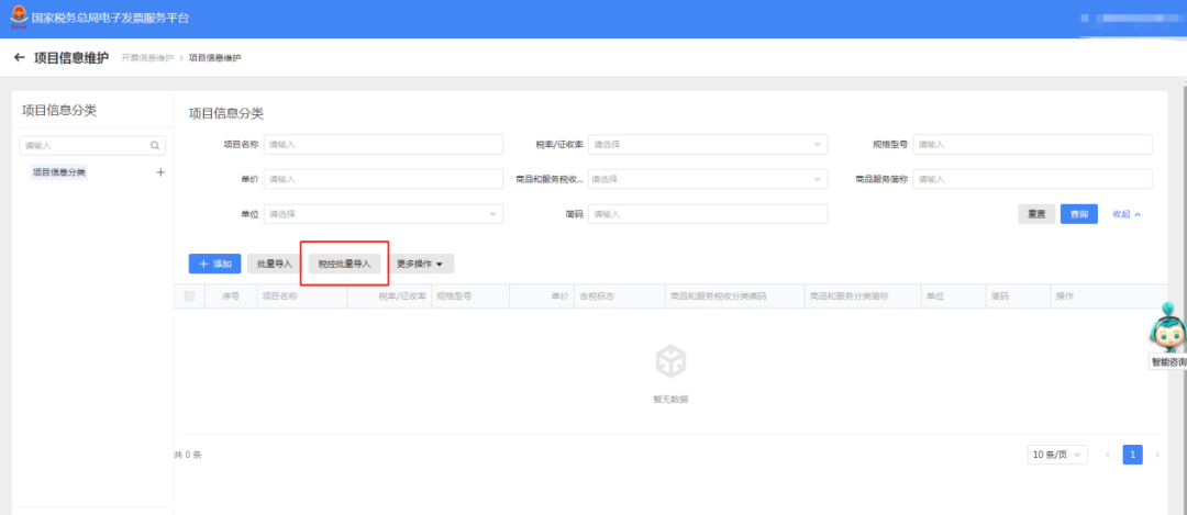 点击“税控批量导入”按钮。