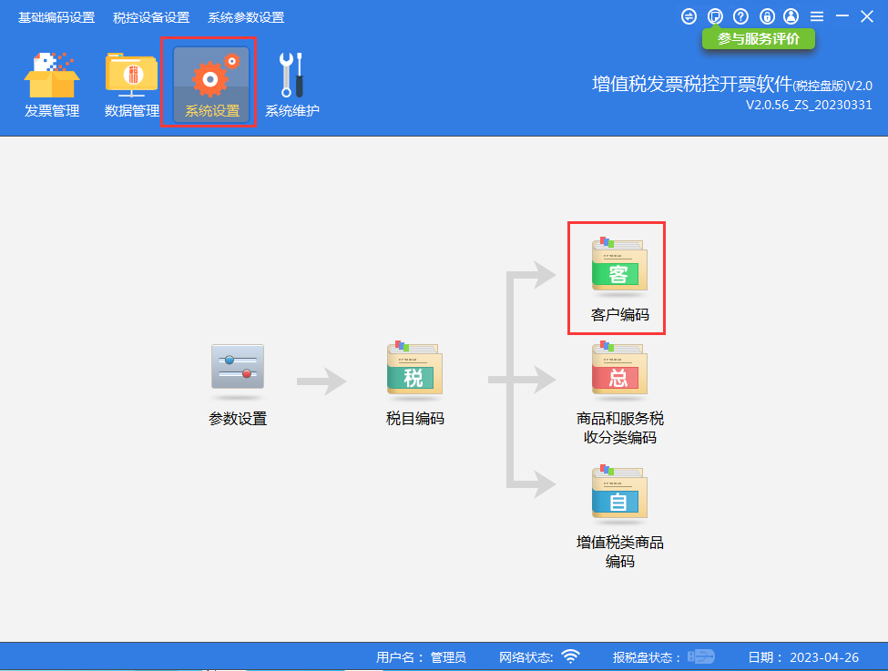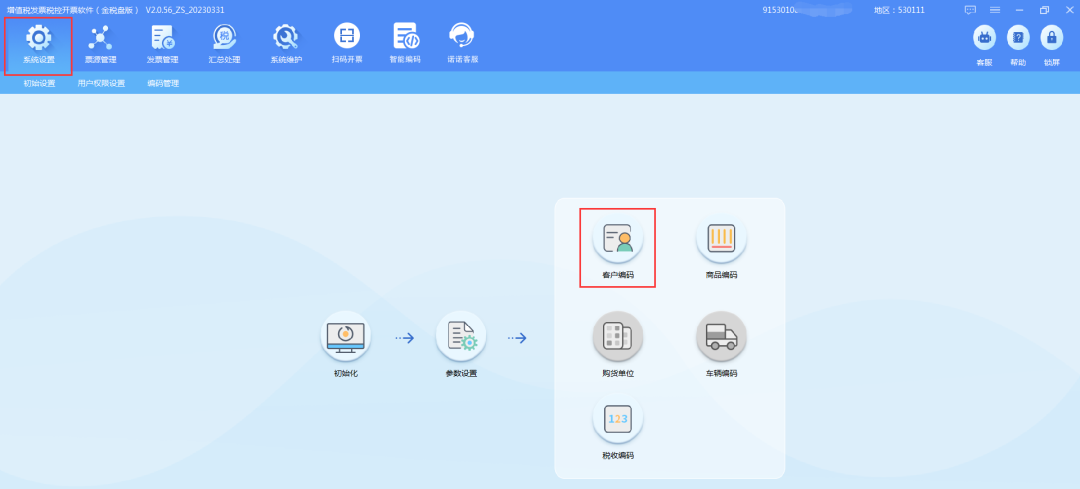 登录开票软件后,点击【系统设置】—【客户编码】。