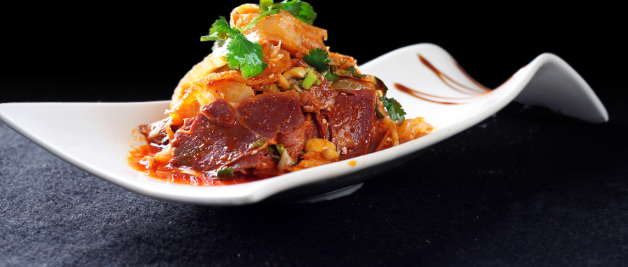 肺片汤2500 克、盐70克、味精90克、鸡精50克、老抽70克、白糖60克、香油10克、花椒面5克,麻辣鲜5克。
