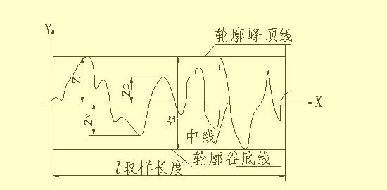 2))轮廓最大高度(Rz)--在取样长度内,轮廓峰顶线与轮廓峰底线的距离。使用时优先选用Ra参数。