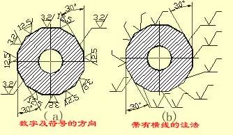 2)表面粗糙度代号中数字及符号的方向必须按规定标注。