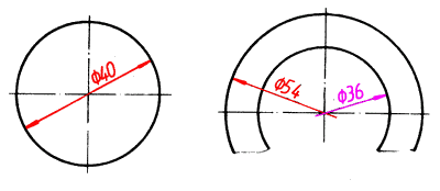 圆的直径尺寸一般应按这两个例图标注。