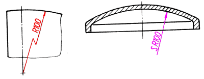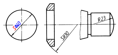 标注球面的尺寸,如左侧两图所示,应在ø或R前加注“S”。不致引起误解时,则可省略,如右图中的右端球面。