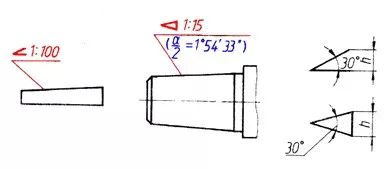 斜度和锥度符号的画法,见右两图所示,符号的线宽为h/10,h为字高。