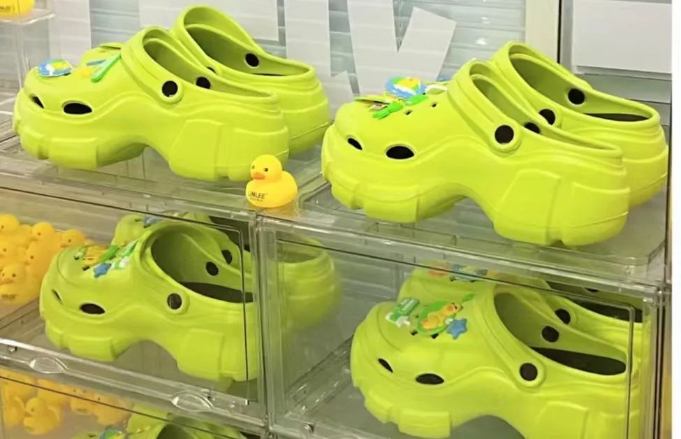 今年夏天,洞洞鞋成了LINLEE林里绕不开的一个标签。社交平台上林里LINLEE的相关话题下,满屏绿色洞洞鞋。以“LINLEE绿”为主色调,亮眼吸睛,辨识度高,搭配10款不同的鞋花,包含鸭鸭冲浪、柠檬茶等品牌元素及夏日场景元素,消费者还可以DIY出不同花样。