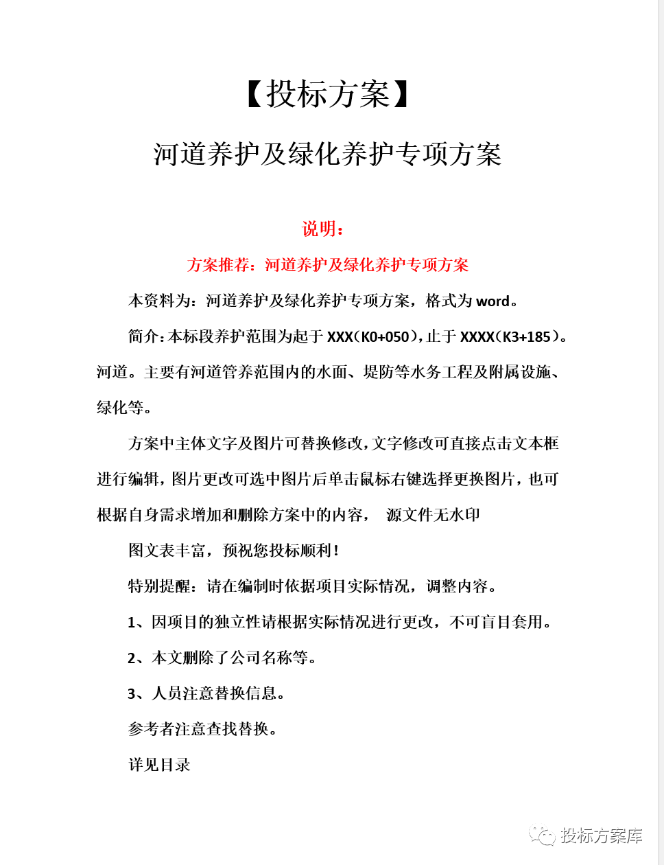 河道及绿化养护投标方案(精品模板)