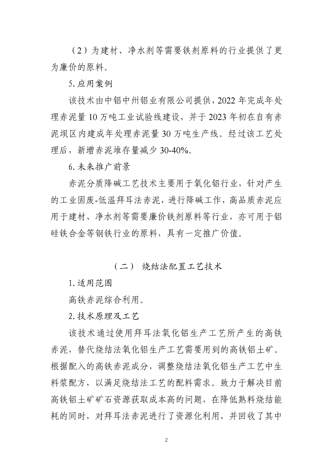 《目录》涉及2项赤泥综合利用工艺技术,涵盖赤泥分质降碱和烧结法配置技术等,每项技术的介绍详见附件。