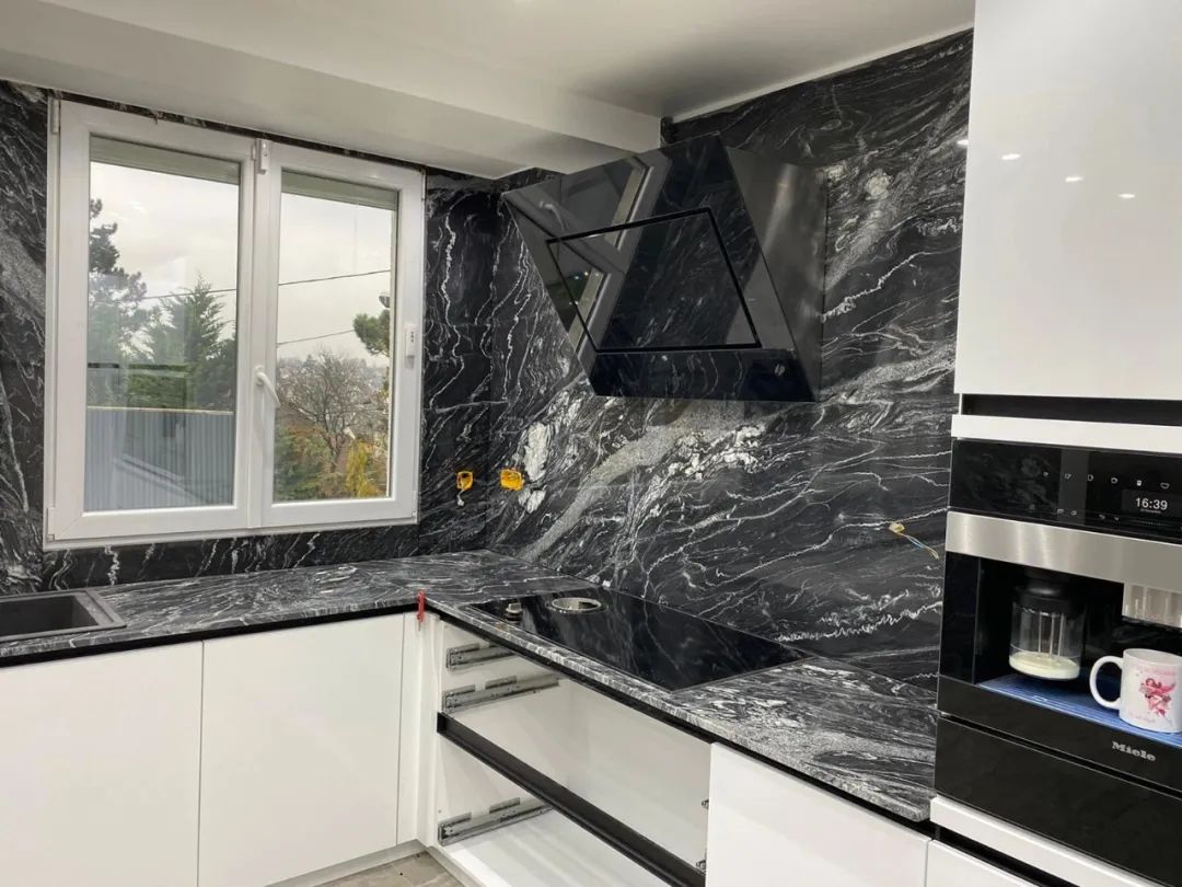 此外,大理石台面板的独特纹理也为生活增添了艳丽色彩。每块大理石都有着自己独特的纹理和颜色,这种自然生成的艺术形式使得每个台面板都成为了一个独特的艺术品。大理石的纹理可以是醇厚、优雅的,也可以是奔放、活泼的,使得家居空间充满了与众不同的设计感和个性。家具、灯具等与大理石台面板的搭配更是相得益彰,营造出高雅奢华的居住环境。