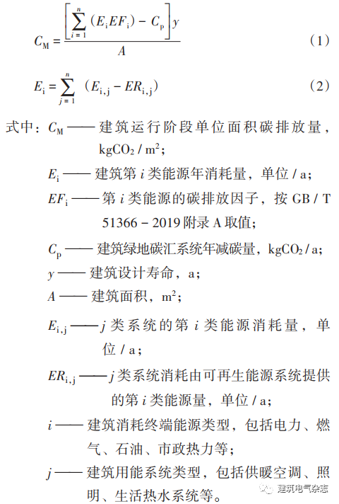 该医院的能源消耗为水、电、天然气、汽油以及柴油,根据GB / T 51366 - 2019《建筑碳排放计算标准》中建筑运行阶段单位面积的总碳排放量(CM)按下列公式计算: