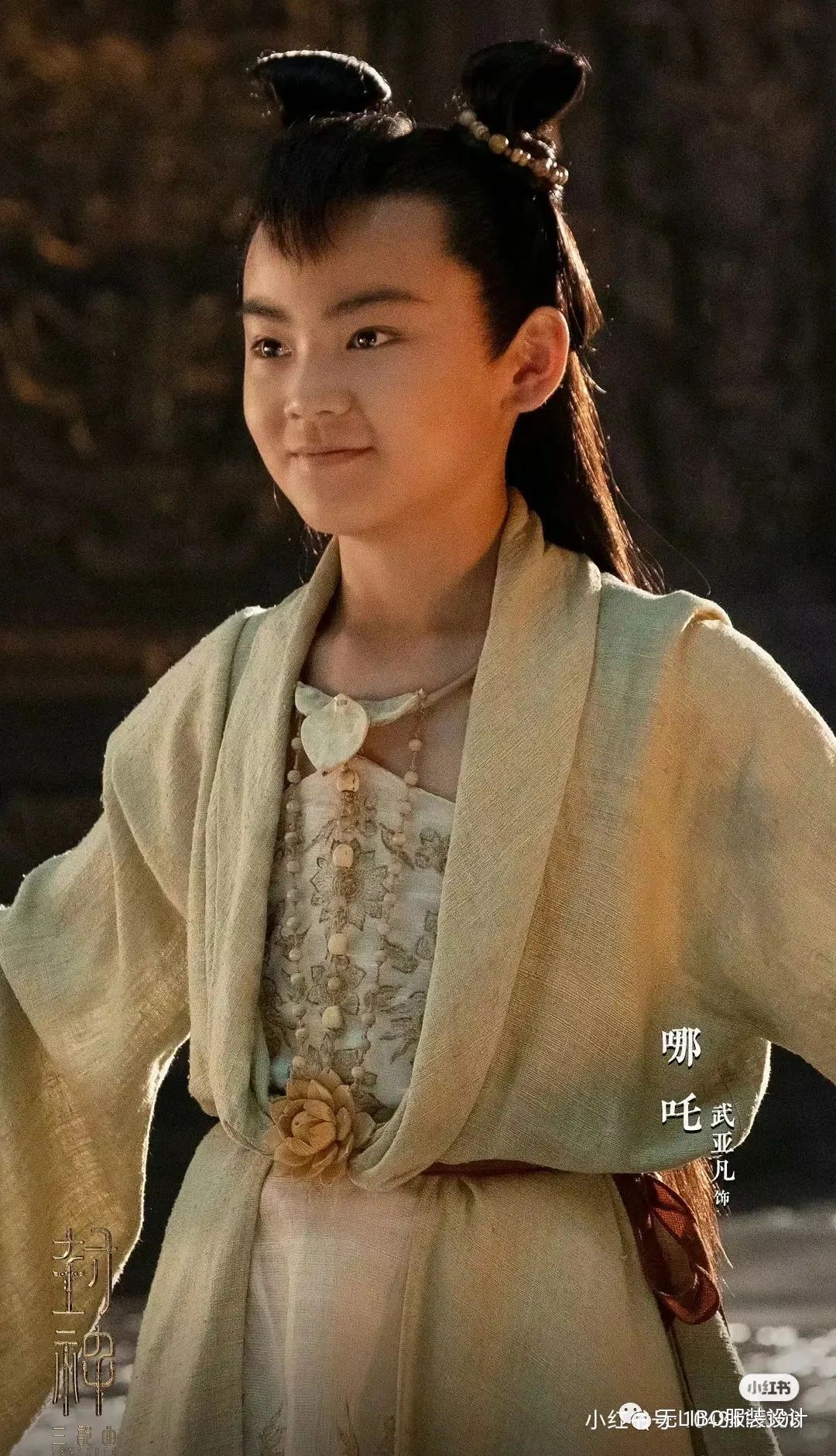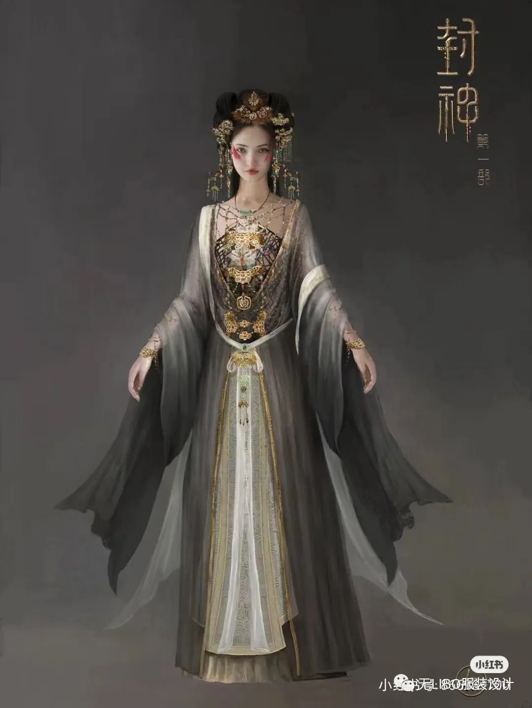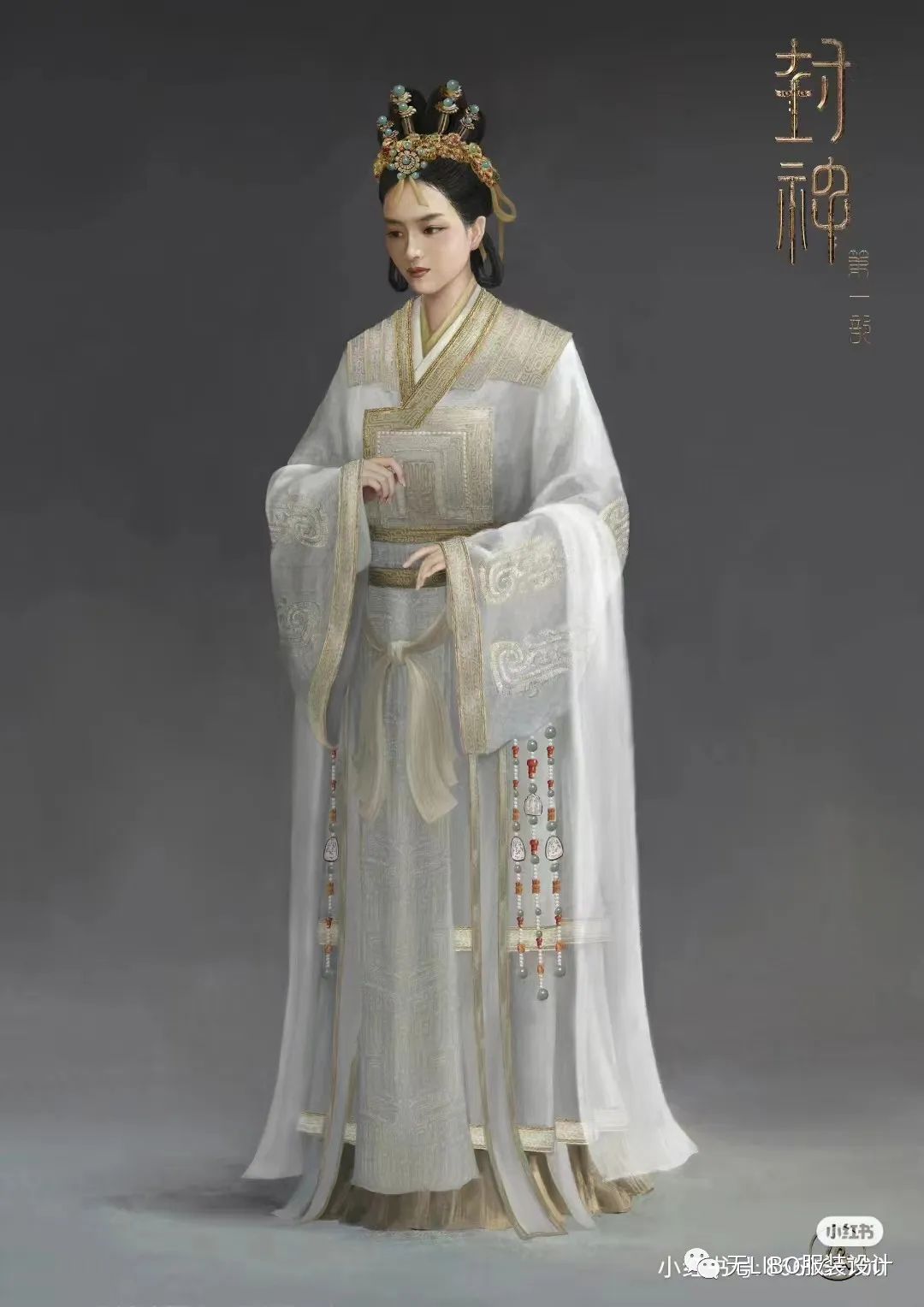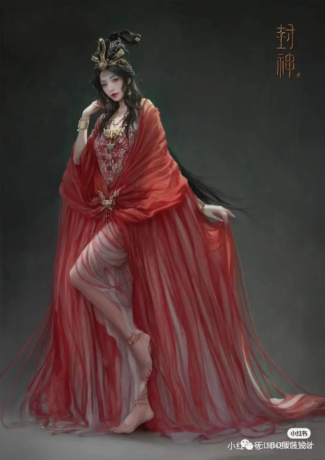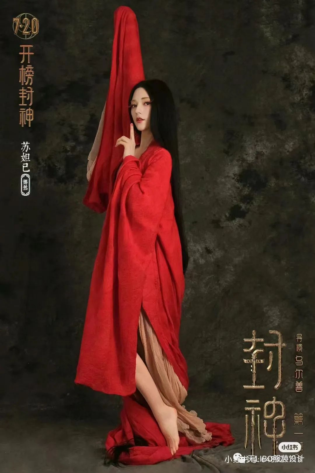 特辑中所见,《封神第一部》的人物服装造型,设计灵感来自元末明初时期的水陆画,装饰图案和纹路来自商代的青铜器和玉器。10位画师负责绘制服装设计稿,如妲己的服装参考了诸多古代典籍和古画,并吸取现当代服饰理论。片中,妲己在鹿台宴饮的这场戏,红衣造型采用了剪裁简单的深衣,搭配传统编织工艺的璎珞。人物造型设计师赖宣吾介绍,妲己从最初被殷寿俘虏时代表古典闺女形象的青莲色,逐步过渡到粉红色和朱红色,象征幽囚数百年的狐妖的内心的变化。