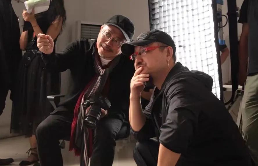 美术指导叶锦添(左)和导演乌尔善在商议美术设计