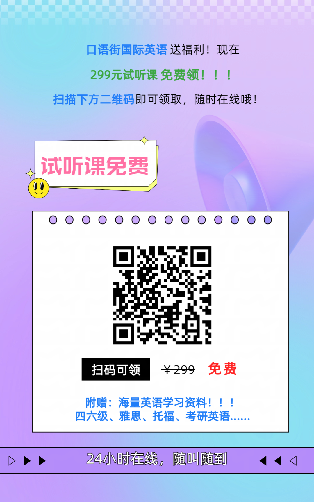 一家领先的大学生线上口语培训品牌——口语街国际英语!那么不要错过口语街国际英语,我们将帮助你实现口语突破!