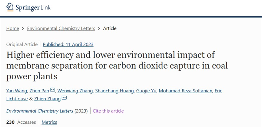 近日,辽宁石油化工大学石油与天然气工程学院潘振教授团队在环境领域著名学术期刊Environmental Chemistry Letters上发表了题为“Higher efficiency and lower environmental impact of membrane separation for carbon dioxide capture in coal power plants”的论文。文中对使用胺基化学吸收和二级膜分离工艺捕集CO2的超临界煤粉电厂建立了生周期评价模型,通过生命周期的视角评估并比较了两种CO2捕集工艺的环境影响,及其性能表现。应用胺基化学吸收工艺的超临界煤粉电厂有着更高的能量消耗,其额外的燃料消耗产生了11.6%的能源惩罚。而在环境效益上,应用二级膜分离工艺的超临界煤粉电厂对人类健康、生态系统和资源消耗都表现出更低的损害。此外,对两种捕集工艺生命周期的过程贡献分析表明,系统的电力供应和煤炭供应过程是环境影响的主要贡献者。