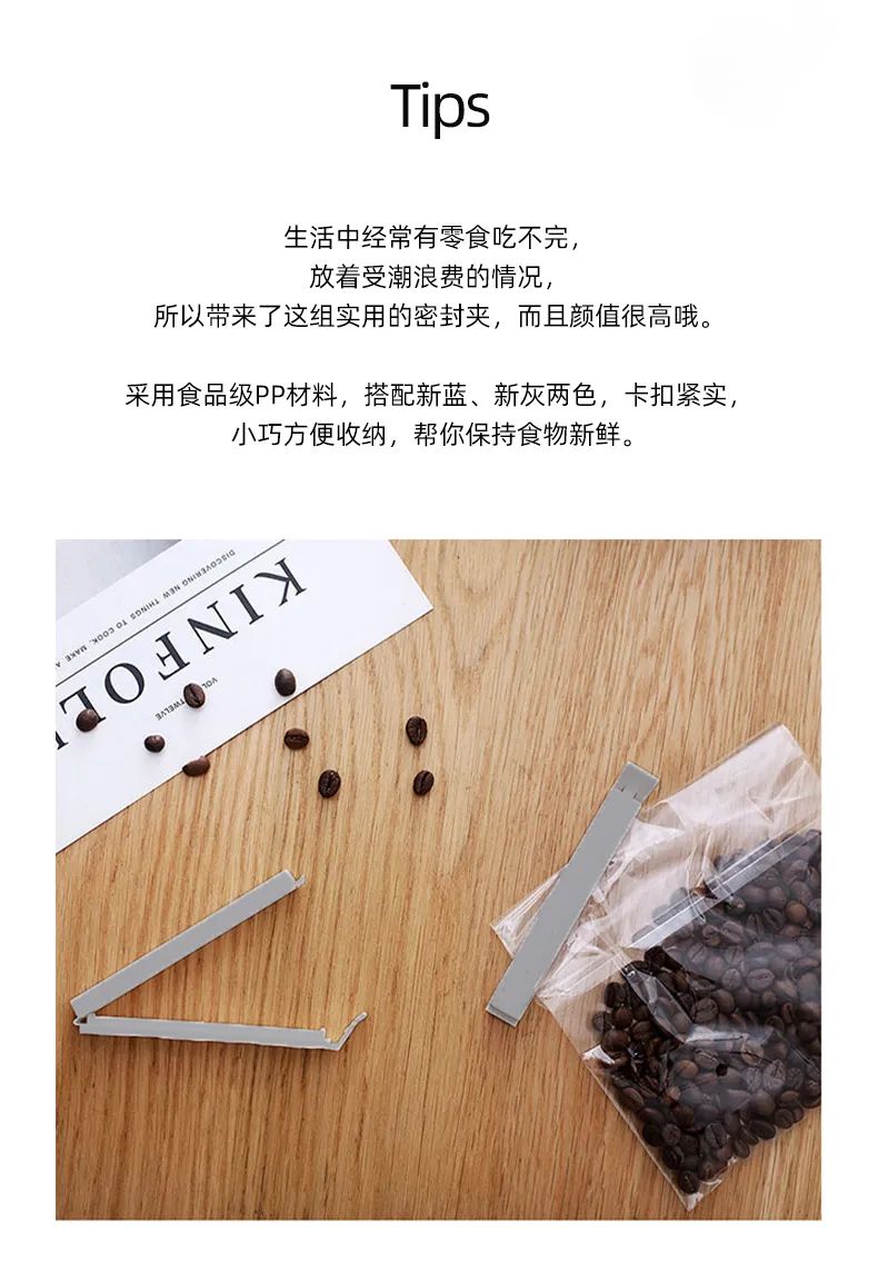 夹零食、夹调味料、夹奶粉、夹袋装咖啡,尺寸适中,轻松收纳吃不完的食物。
