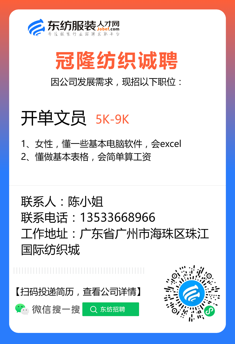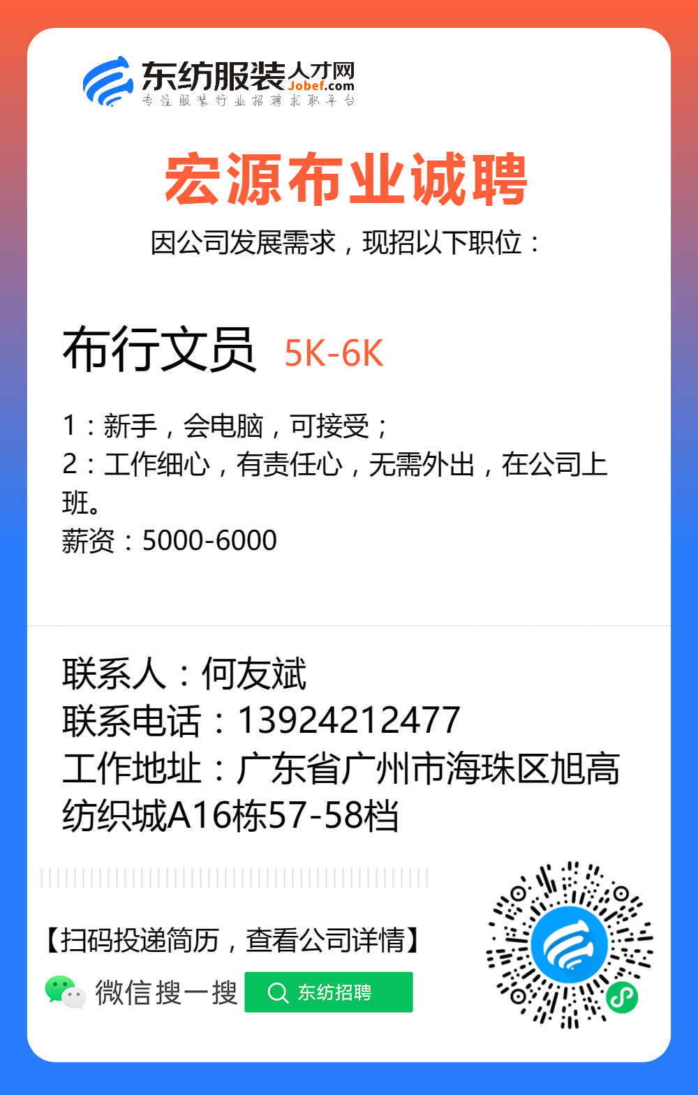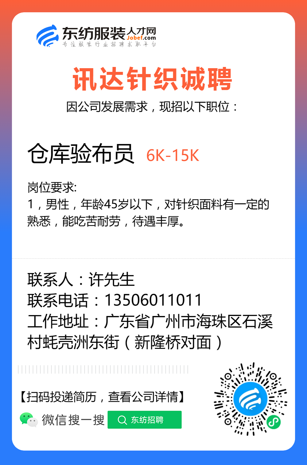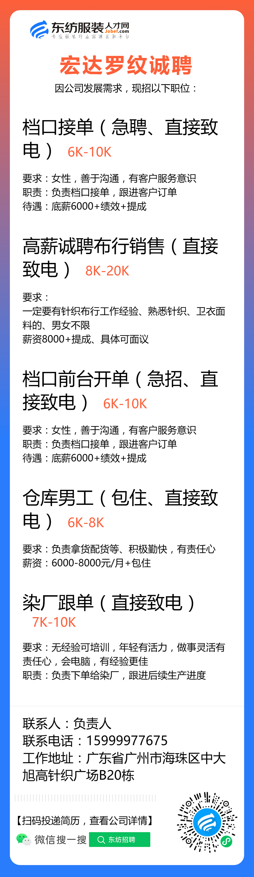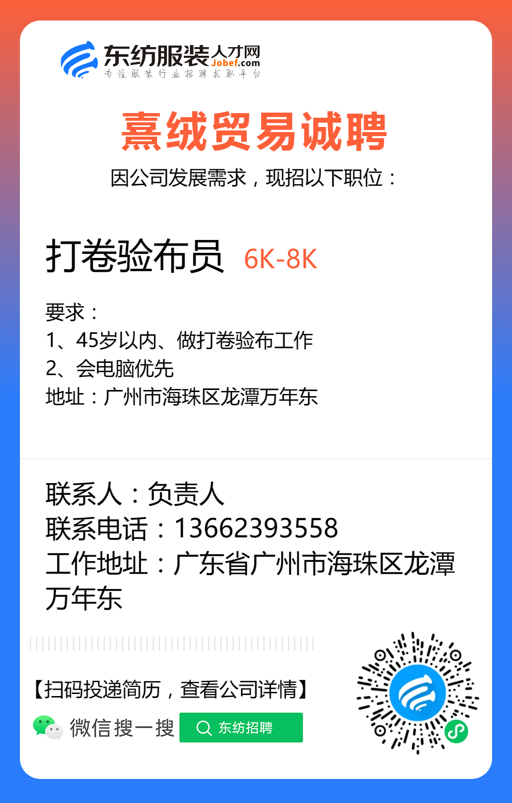 服装招聘·布行类丨验布员、布行销售、质检员……