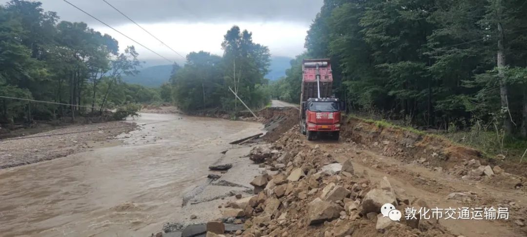 受上轮强降水影响,我市路域道路多处水毁严重,其中西北岔林场至小白抽水电站、团北至老白山段道路中断,S507西北岔至黑龙江交界道路路肩损毁严重。交通运输局第一时间组织技术人员前往受灾地区查看道路损毁情况,初步统计冲断道路累计长度5公里。经协调当地林业局提供取料场,并马上组织2家养护企业出动人员设备进行抢通工作,一场与时间赛跑的公路抢险抢通战全面打响。
